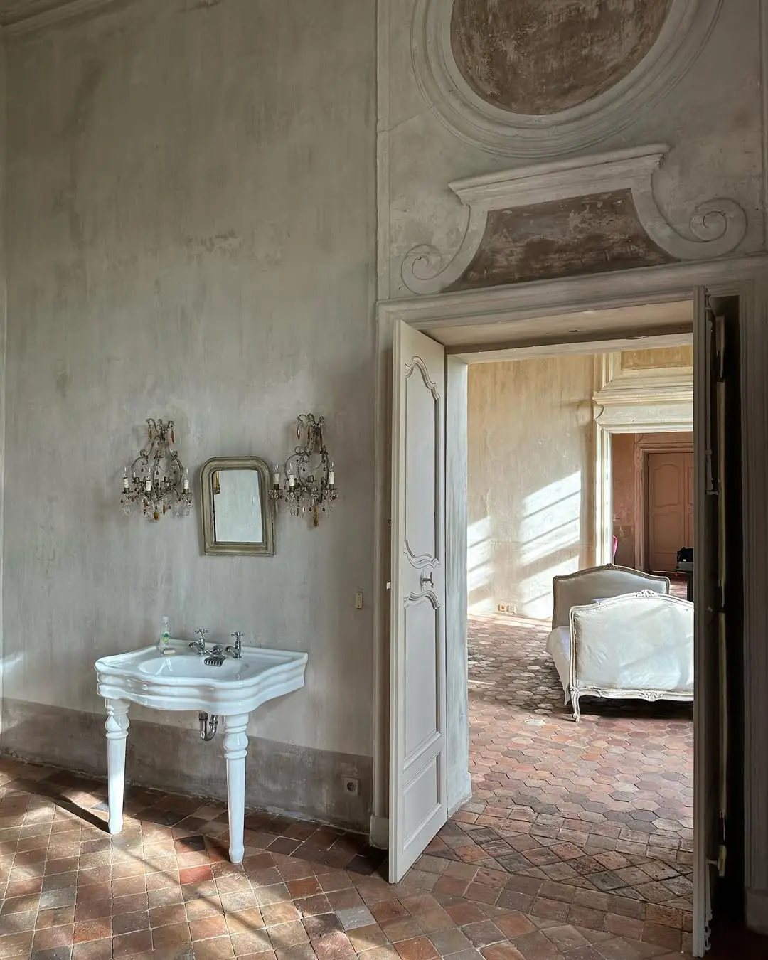 This, more and more, is the aesthetic I find myself drawn to lately. During one of my quiet internet wanderings, I stumbled upon one of the most beautiful châteaux in Provence: the Château de Moissac-Bellevue. And it felt like a perfect embodiment of everything I’ve been craving, a poetic harmony of aged stone, raw and natural materials (unfinished wood, copper, brass, aged iron, linen, cotton…), antique furniture, minimal decoration that allows space to breathe. Terracotta tiles, original stone fireplaces, gauzy linen curtains… A rustic yet contemporary spirit, stripped of pretense, free from folklore or cliché.