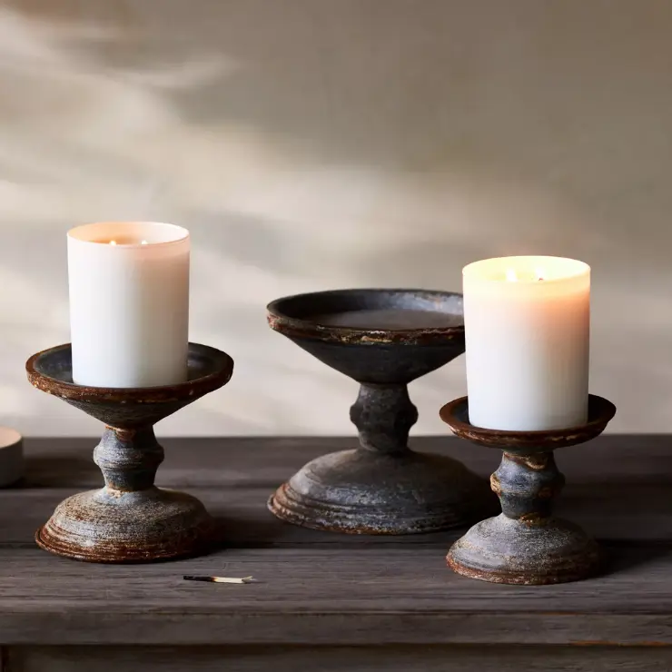 Anthropologie Aged Iron Pillar Candle Holder