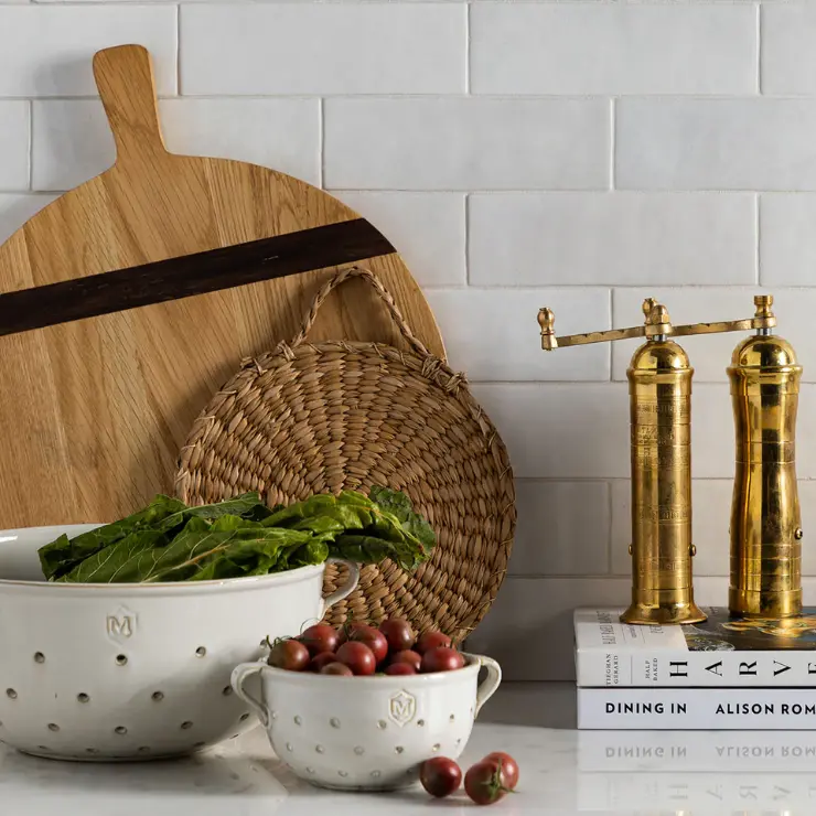 In the kitchen, reach for the utilitarian made beautiful: copper cookware (à la Mauviel), glazed ceramic dishes like those from Astier de Villatte or Caron, stemmed glasses in hand-blown glass, wooden utensils and cutting boards, ceramic jars, wicker baskets, and linen tea towels. A cube of Savon de Marseille on the sink, a ceramic pitcher left on the counter… these simple objects can quietly transform the everyday into ritual.