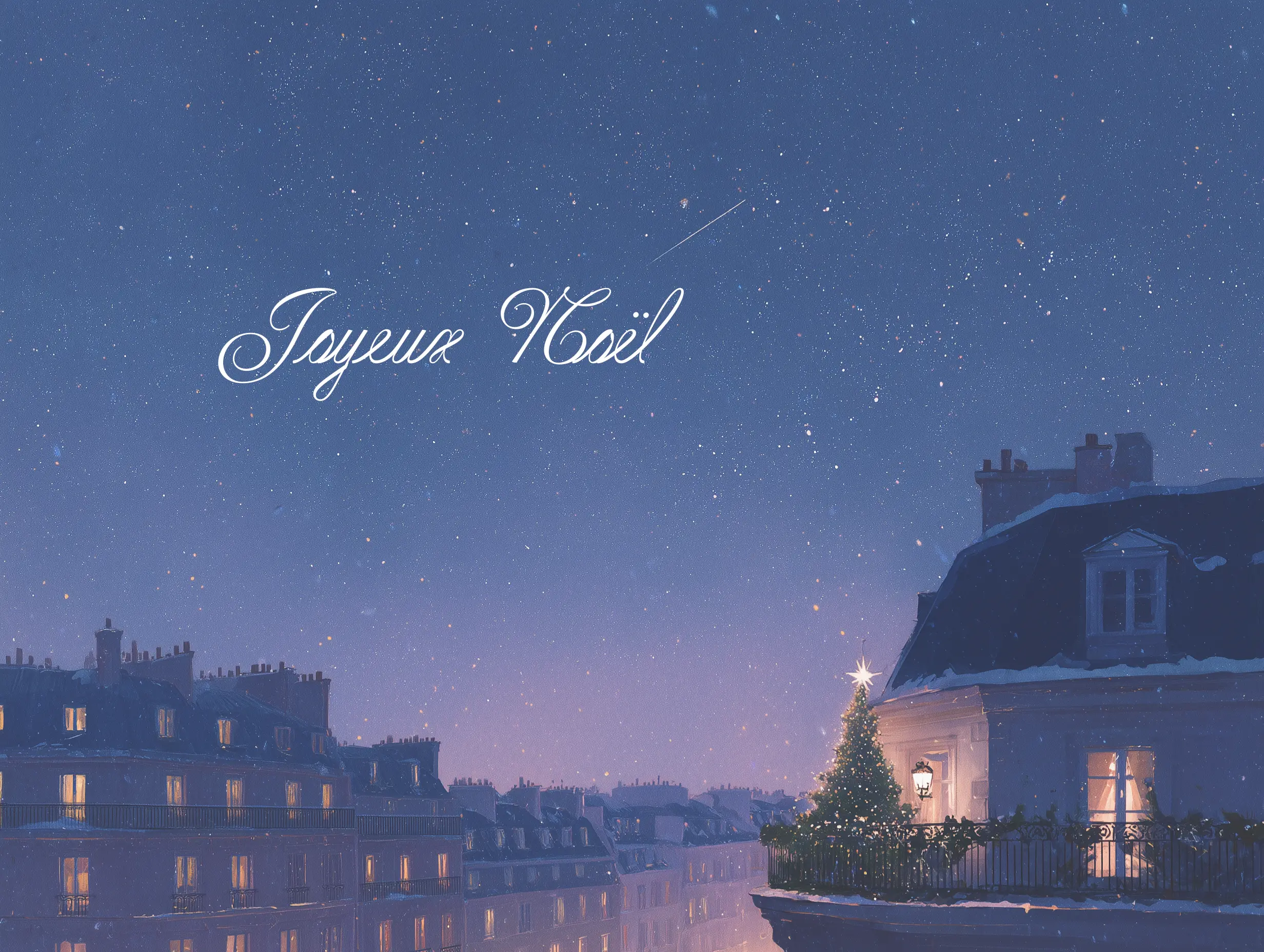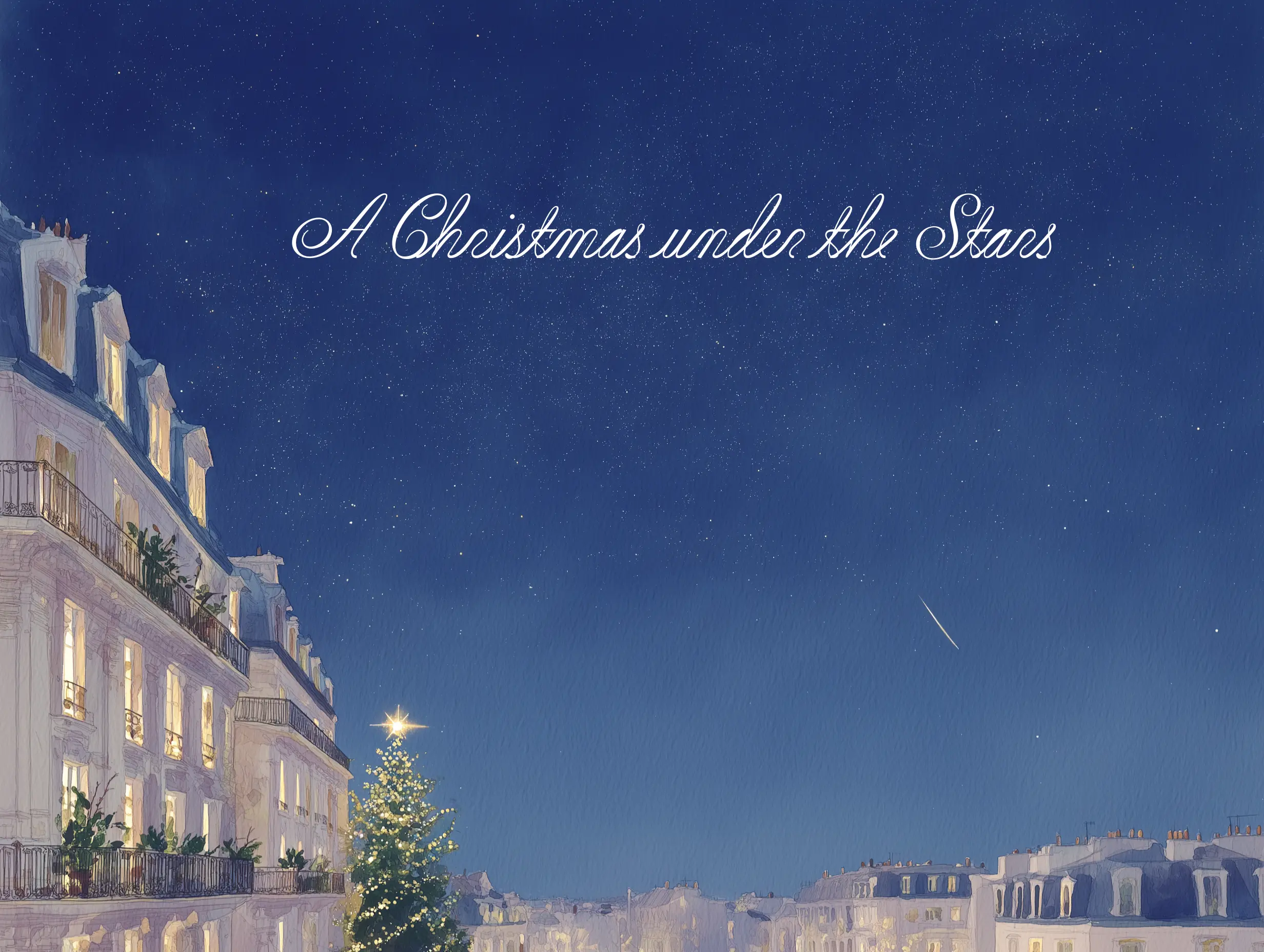 For this year’s Noël, I wanted to imagine A Christmas Under the Stars, when the sky is clear after snowfall, when the cold has hushed the city and Paris has fallen asleep. Only a few golden glows remain: from streetlights, candles, and bedside lamps. The night stretches long and silent.