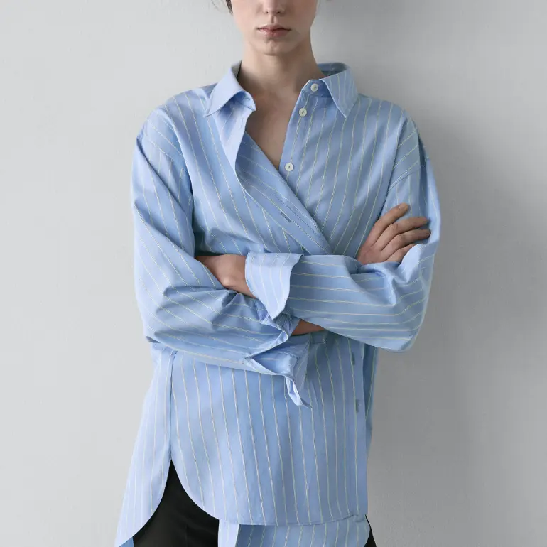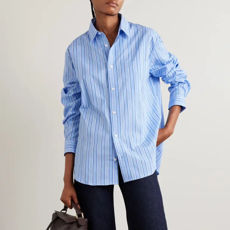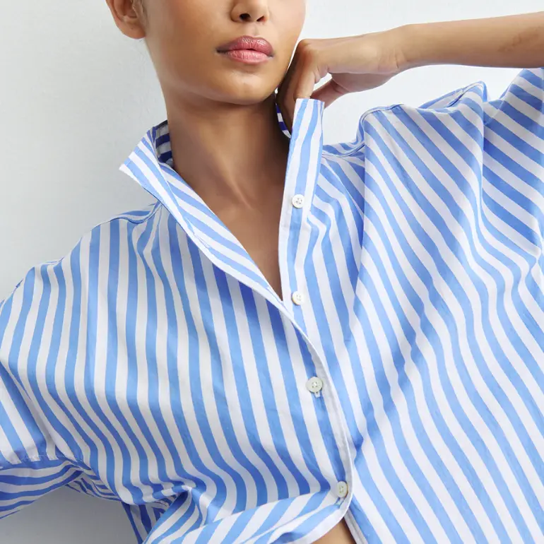 More relaxed than a classic button-down yet more composed than a basic tee, a striped cotton shirt strikes a thoughtful balance. It sharpens the line of the silhouette while remaining easy and wearable.