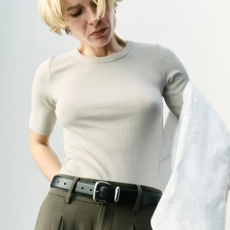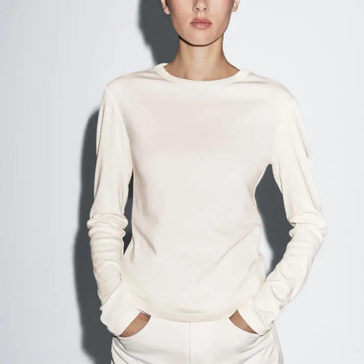 In today’s article, I wanted to reflect on those understated essentials: the pieces we slip into almost without thinking, especially on mornings when it feels as though there is nothing to wear (and if you’re anything like me, that happens more often than we care to admit). These are the simplest of tops, short- or long-sleeved, that pair effortlessly with jeans, trousers, or skirts already waiting in your wardrobe. The quiet layers that disappear beneath a blazer or a slightly dressier jacket, yet elevate everything with the lightest of touches.