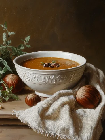 A delicious combination of chestnuts, shallots, bouillon cube, cream, and butter.