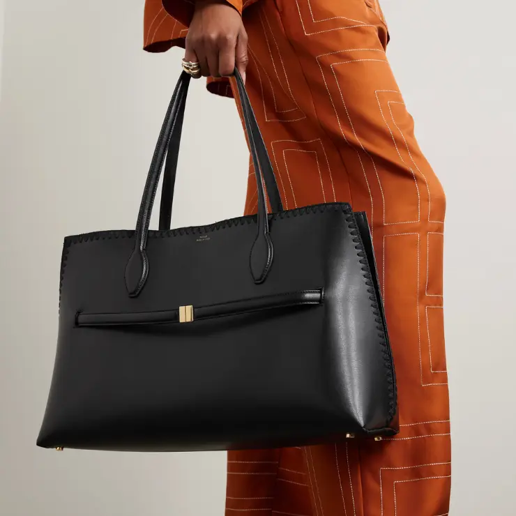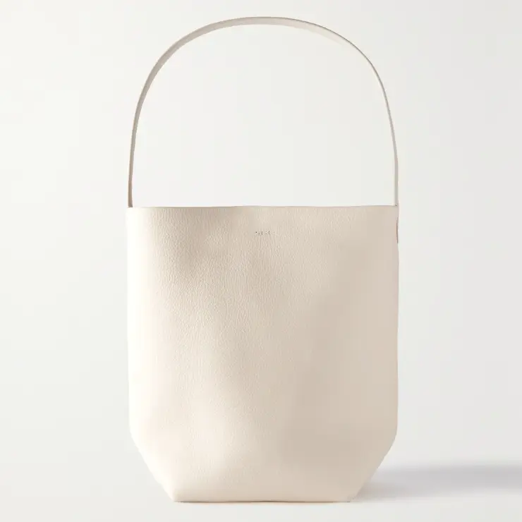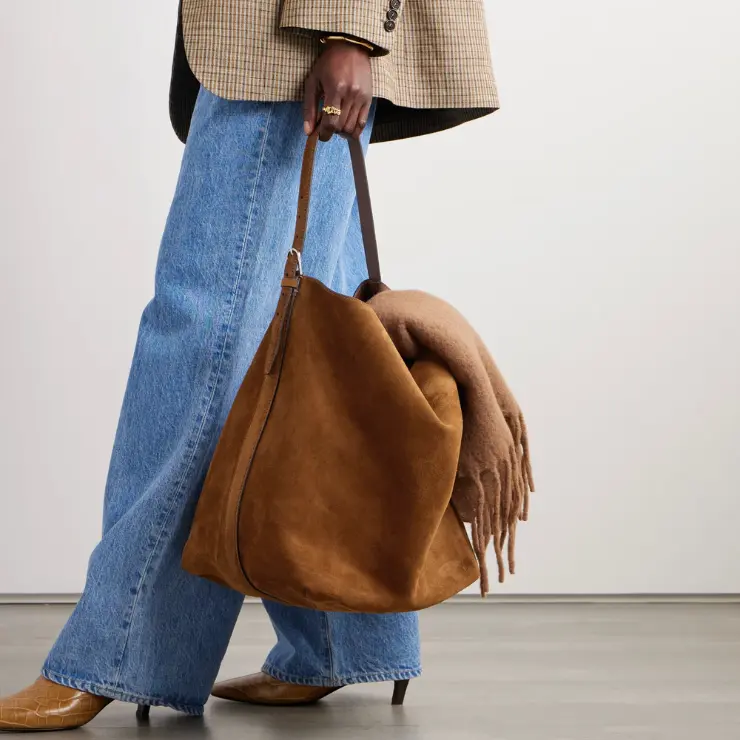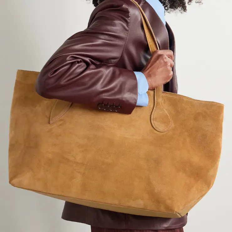 If suede feels a little too risky, you can never go wrong with the classic leather tote in timeless shades like black, the ultimate wardrobe staple and a safe choice (I adore the ultra-chic belted leather tote from Totême, or this more affordable similar style from J.Crew). Or, you might opt for a lighter hue: beige, cream, chalk, or even ivory. These shades pair effortlessly with virtually any colour in your wardrobe, and look especially elegant when they’re rendered in a tote with clean, minimal lines, like the N/S Park from The Row. Light neutrals have also been a recurring theme in the autumn/winter collections of the great couture Maisons, most recently at Céline and Max Mara. It’s a trend I’ve personally embraced with the oversized Linea bag in stone, which I know I’ll be carrying well into winter, perhaps with a long ivory wool coat.
