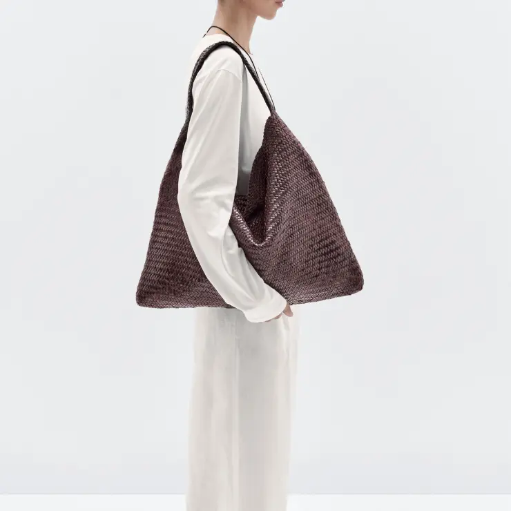 Finally, if you want to keep it classic but with ce petit supplément d’âme (that little something extra), a subtle twist, I recommend braided leather. It’s a beautiful texture that has stood the test of time and, in my view, has become truly timeless. I love this material for its suppleness, which lends itself to less structured, more slouchy silhouettes, often generously sized (like this stunning brown marl nappa leather woven maxi tote from Massimo Dutti), perfect for carrying a few more essentials ;). For this autumn, I’d opt for braided leather in black, brown (such as this large braided nappa tote), or burgundy. These tones will complement all your autumn looks and will remain your trusted companion right through to the depths of winter.